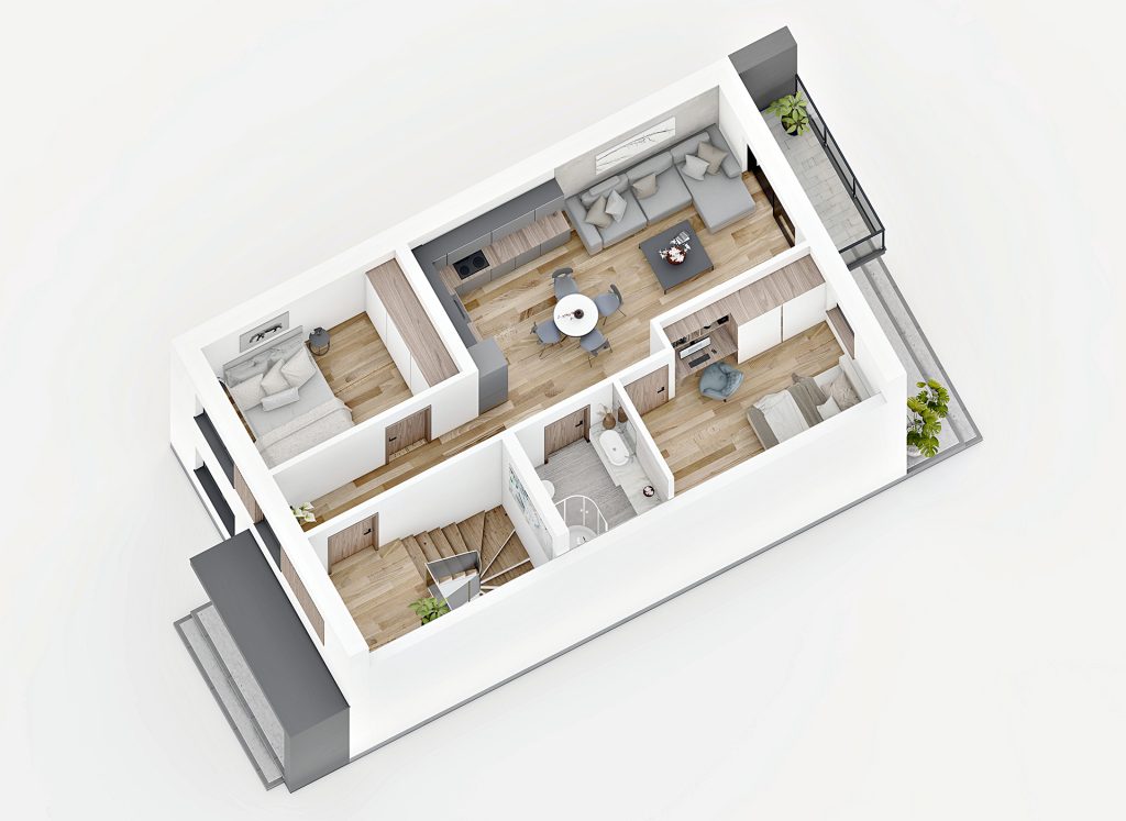 Dzięki rzutom trójwymiarowym wartość Twojej inwestycji wzrośnie, a to przełoży się na szybszą sprzedaż – obrazowa prezentacja ułatwia wybór i skraca czas namysłu.